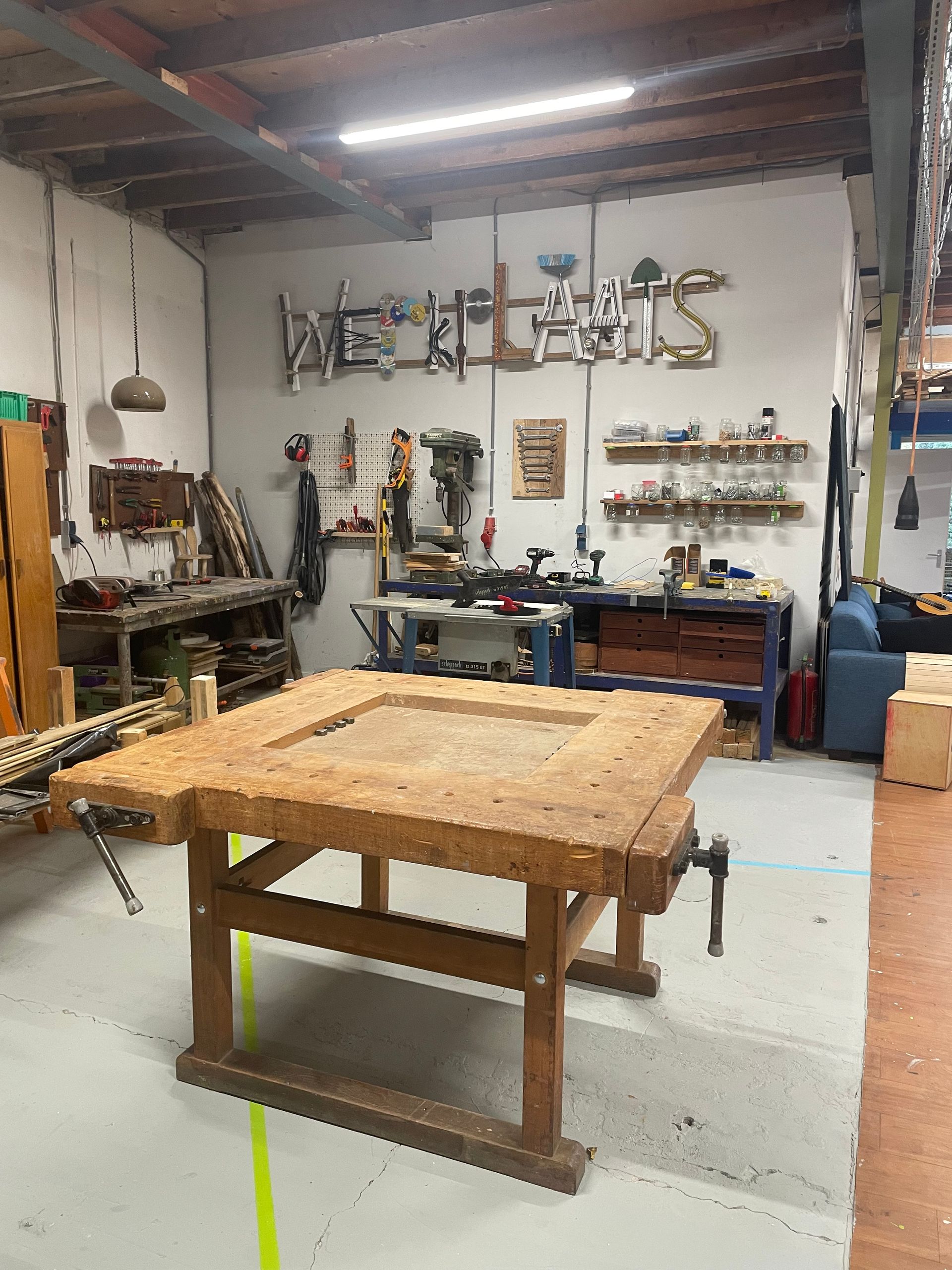 De huiskamer is het onbetwiste kloppende hart van de Buurthuiskamer Zandweerd. Het is de ruimte om te verblijven, ontmoeten, flexwerken en koffie te drinken. De huiskamer bestaat uit twee delen, gescheiden door een wand: aan de ene kant een knutsel- en werkhoek met een grote tafel en stoelen. Aan de andere kant een gezellige woonkamersetting met comfortabele banken, tafels en stoelen, spelletjes en een (gestemde) piano. De opstelling van de tafels en stoelen kan eenvoudig worden aangepast. Een deur leidt naar de tuin met picknickbanken, een schuifwand naar de woonkeuken.