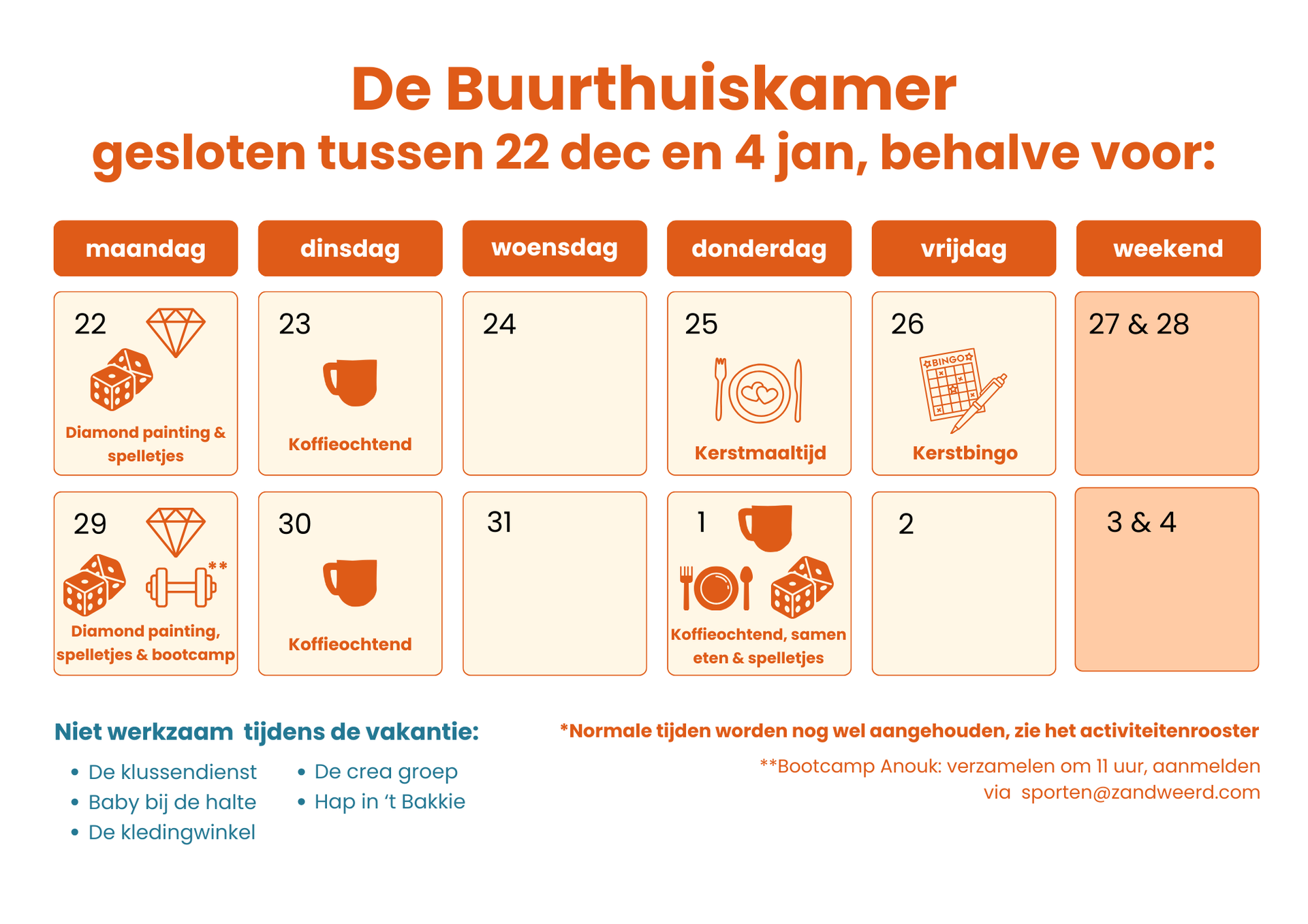 Wil je wel een uurtje of meer in de week ergens mee helpen? Meld je dan bij onze Buurthuiscoach Susette via buurthuiskamer@zandweerd.com of loop even binnen.